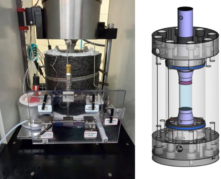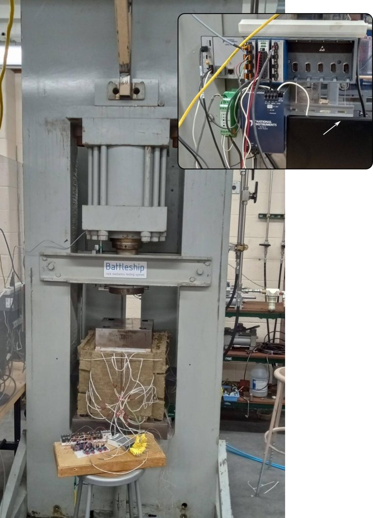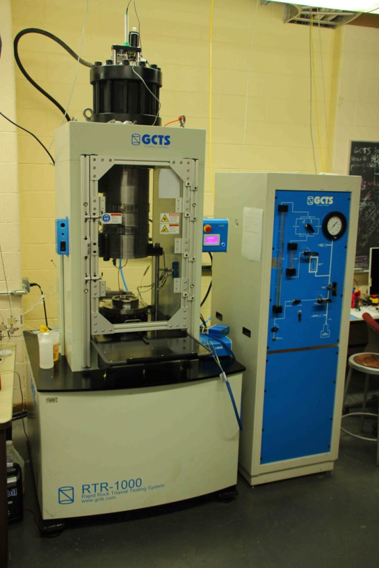 • specs: 1,000 kN load frame, 0-140 MPa confining pressure, P- and S-wave velocity measurements, up to 200C temperature control