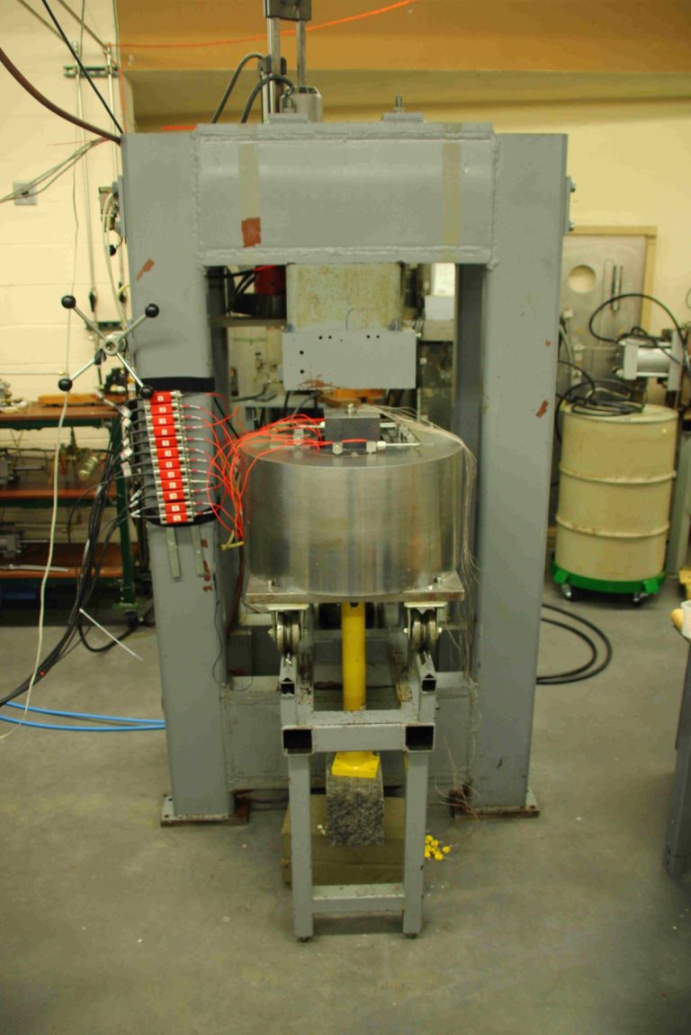 • use: large block (5.5″x5.5″x8″) true-triaxial experiments for borehole testing under in situ stress conditions; possible drilling under stressed conditions;